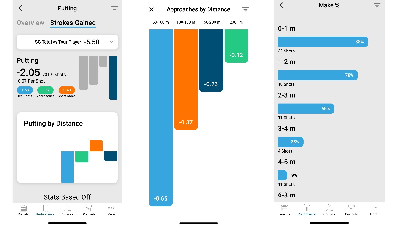 And if you’re keen to improve, you can compare your strokes gained stats against other handicap levels (even Tour pros) to see which areas they are smoking you in.